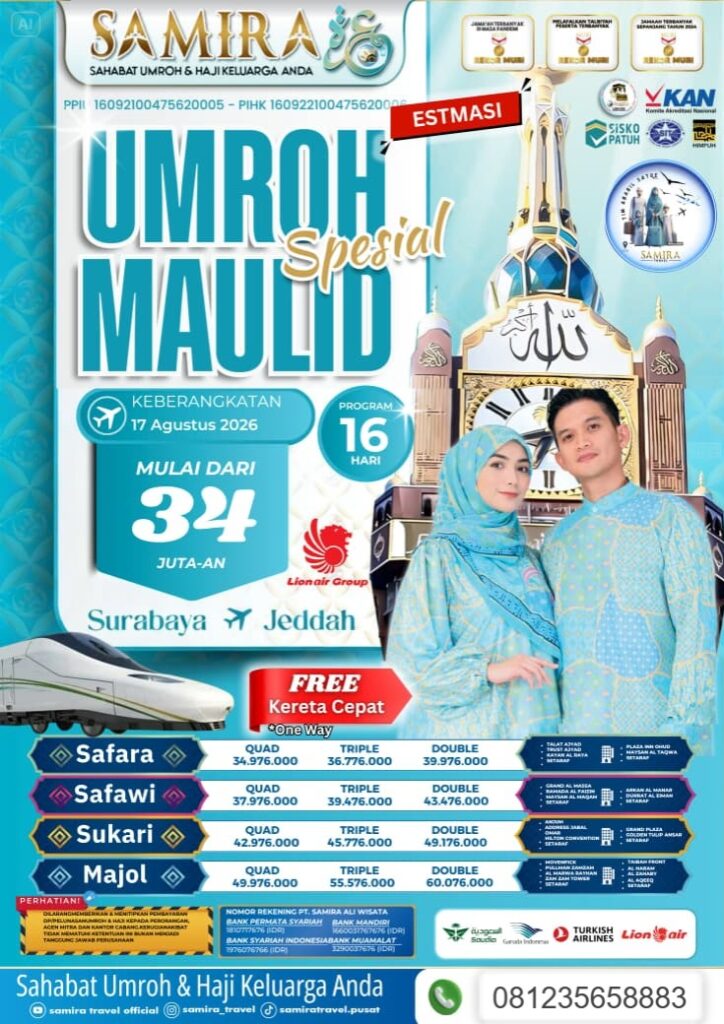 Ingin merasakan ibadah umroh di momen yang istimewa? Samira Travel Umroh Pasuruan mengajak Anda dan keluarga untuk mengikuti program Umroh Spesial Maulid yang penuh berkah dan kenangan.